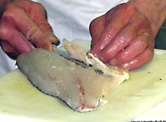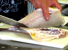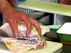 中骨の上から庖丁が入る |