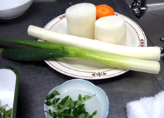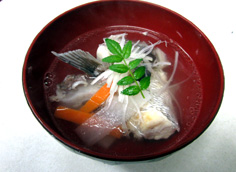 材料 4人分 鯛の頭と粗 1匹分 大根・人参・ネギ 各少々 木の芽 |