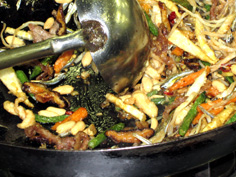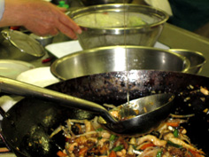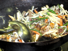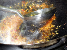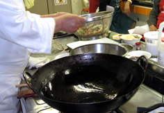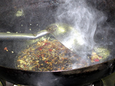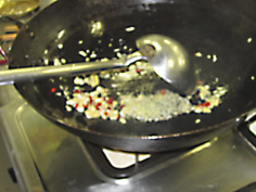 中華鍋で薬味を炒める |