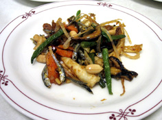 人参 50g いんげん 50g 干し椎茸(戻して) 4枚 細竹(水煮) 50g ※薬味 赤唐辛子(小口切り) 2本 にんにく(微塵切り) 2個 ショウガ(微塵切り) 30g 別に片栗粉・サラダ油・ごま油を用意 |