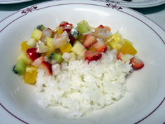 器に御飯を盛り、果物の餡をかける。完成! |