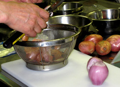 煮つめたエシャロットを鍋に取り(ここでは1人前を作っている) |