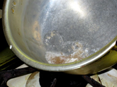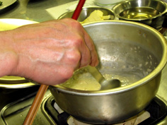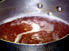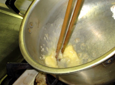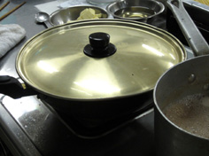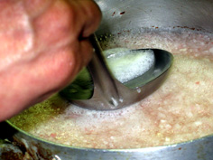 途中でアクをとりながら。(ここは、参加者全員の分なので量は多い) |