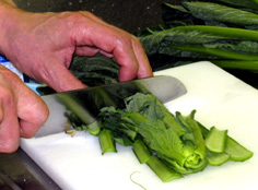 付け合せの小松菜は、5〜6cmのざく切り |