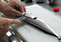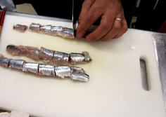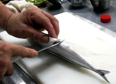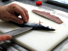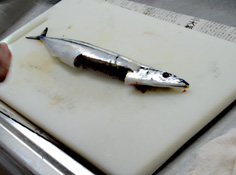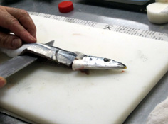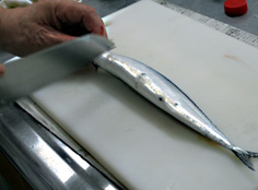 さんまはさしみと同様にきれいにし、頭を落とす |