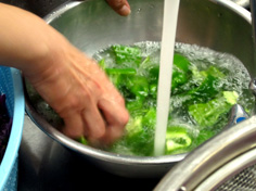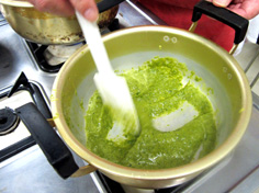 鍋に移し、再度加熱。他の野菜(いんげん・にんじん・しし唐・ナス等)でも同様に。 |
