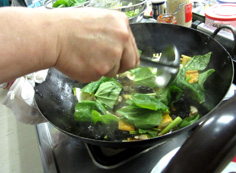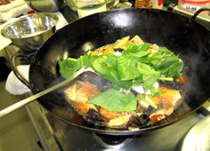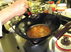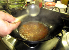水溶き片栗粉でトロミを付け、ゴマ油をたらす |