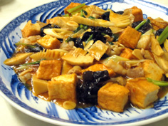材料 4人分 厚揚げ 3丁 豚バラスライス 100g キクラゲ(戻す) 12〜16枚 たけのこ 120g 小松菜 1/3把 ネギ 1本 にんにく 1〜2個 ※調味料 醤油 大さじ5〜6 砂糖 大さじ1〜2 酒 大さじ3〜4 中華スープの素 小さじ1 豆板醤 大さじ1 水溶き片栗粉 適量 ゴマ油 少々 |
