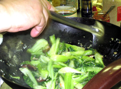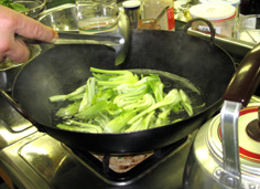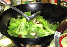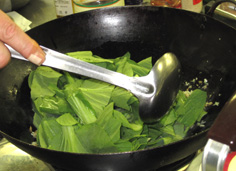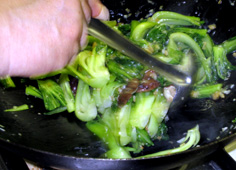 チンゲン菜の葉と茎を加える |