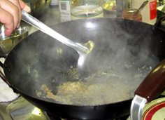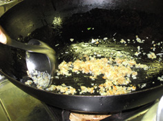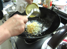 香りが出たら、老酒を加え |
