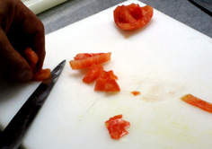 トマトは皮と種を取り、5mm角に切る |