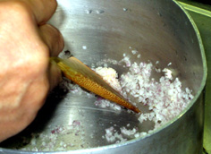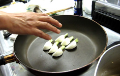 次に、エシャロットを加えて炒める |