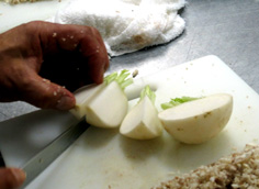 かぶは、6等分のくし型に切る |