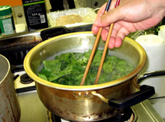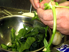 ほうれん草は葉だけ取る |