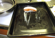 鉄板に溶かしバターを塗り、平目を置く |