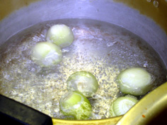 プチオニオンは、沸騰したところに入れて茹でる |