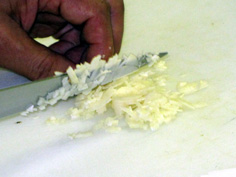 にんにくは微塵切りしたが、四つに切るだけでも良い |