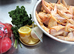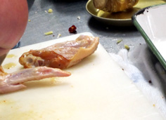 鶏手羽は20分くらい下味をつける。先を落とす |
