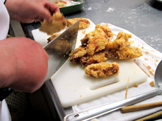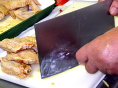 関節に庖丁を入れると、簡単に切れる |