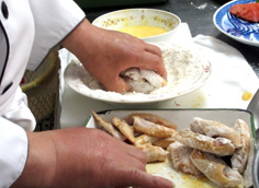 鶏手羽に小麦粉をまぶす |