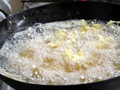 綺麗なキツネ色になったら、油切りをする |