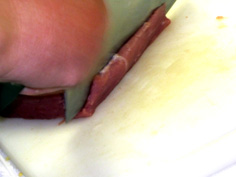 上からが難しい時は、このように端から切る。この時、切り落とさずに1cmほど残し |