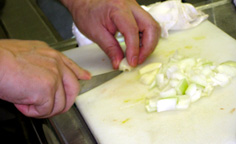 玉ねぎも1cm角。にんにくは芯をとり、みじん切り |