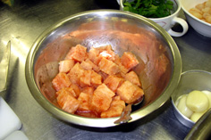 これをボールに入れ、塩・コショウ少々、EVオリーブオイル(50cc)でマリネする。このまましばらく置く |