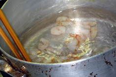 1%の塩を入れたお湯で小エビをさっと茹で |