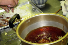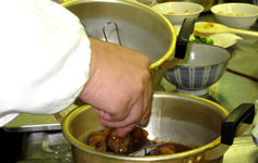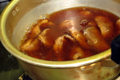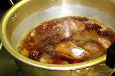 しだいにトロミがつき、ジブジブとしてくる。一説には、治部煮の名前はここから来ているといわれている |