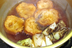 戻しておいた油麩の水気を絞り、鍋に入れてさっと煮る |