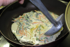フライパンにゴマ油を引き、丸く流す |