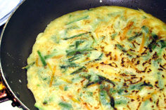 材料 3枚分 ニラ 1束 玉ねぎ 1個半 人参 1/2本 ゴマ油 ※調味料 チジミ粉 300g 昆布だし汁 600cc 昆布茶 小さじ1と1/2 塩 小さじ1 |