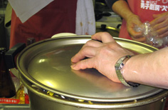 時間が経って水が上がり、沸いてきたら塩を少々加える |