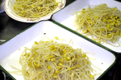 材料 7人分 大豆もやし 300g ※調味料 ゴマ油 大さじ2 塩 大さじ1/2弱 酒 大さじ1 ミリン 大さじ1/2 すりゴマ 少々 白コショウ 少々 |