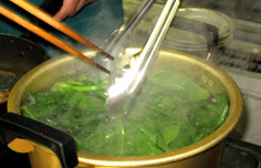 塩少々加えたお湯で茹でる |