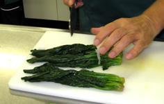 しっかり水気を取り、4〜5cmに切る。ゴマ油大さじ1をふり、醤油、酒、すりゴマ各大さじ1/2、塩少々で調味する |