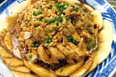 ※タレの分量 黒蜜 80g 醤油 30g テンメンジャン 10g 酢 20g ゴマ油 30g ラー油 30g 煎りゴマ 20g 練りゴマ 20g 練りゴマに調味料を加えて行くようにすると、良く馴染む |