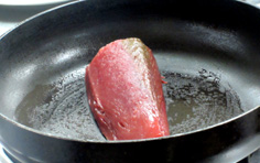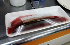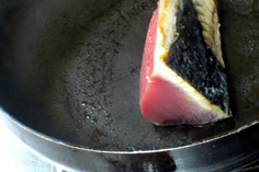 鰹をタタキにするので、皮付きの刺身用を用意 |