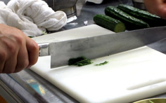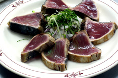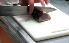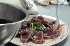 鰹のタタキを切る |