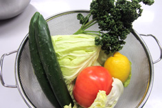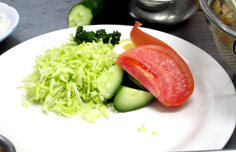 キャベツ 3〜4枚 キュウリ 2本 トマト・レモン 各1個 パセリ 適宜 ※衣用 小麦粉・パン粉 適宜 玉子 1個 牛乳 大さじ2 |