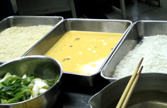 揚げたカツをのせ、完成! 味が付いているが、好みでウスターソース、ケチャップ、マヨネーズ等を! |
