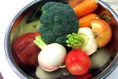 玉ねぎ 60g トマト 1個 キャロット 1本 カブ 1個 ブロッコリー 適宜 ※カブとキャロットのグラッセ用に、砂糖・バターを用意 |