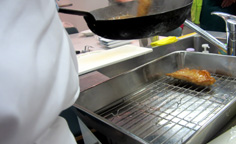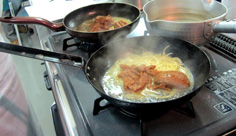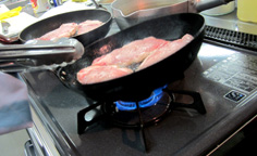 ここでは、肉に8〜9割の火が通るくらいで良い |