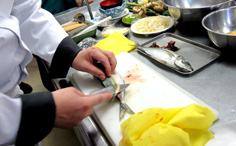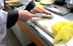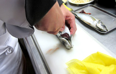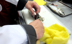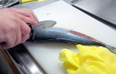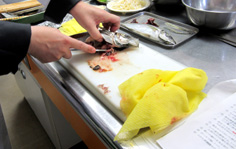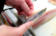 腹側に庖丁を入れ |
