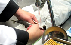 ここで血合いも綺麗になるように、しっかり洗う |