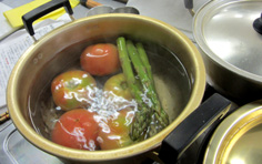 茹でる(トマトは違うメニューのもの)。水気を取っておく |