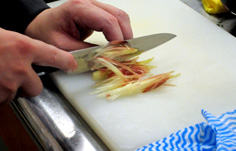 花ミョウガは千切り。水につけておく |