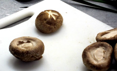 生シイタケは石づきを取り、笠に飾り庖丁をする |