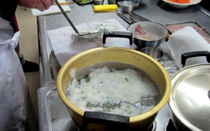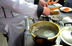 茹でてから冷ます(アスパラガスは違うメニューのもの) |